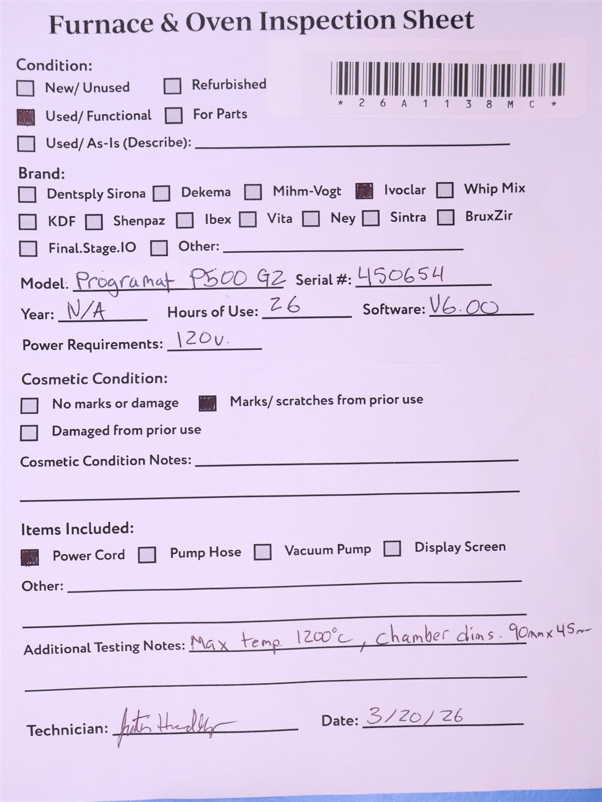 Your purchase will NOT include: Vacuum PumpThis product is pre-owned and may not include the same accessories as a new, unused unit. - other accessories not shown or listed here.The unit was powered on and underwent a thorough visual and functional inspection. The display shows no cracks, dead pixels, or other defects, and all control buttons respond properly. The system was then subjected to a full operational test sequence, including a vacuum test, heating test, cleaning cycle, and dehumidification cycle. Following these evaluations, the unit was calibrated. All tests were successfully completed, and the unit is confirmed to be fully functional.