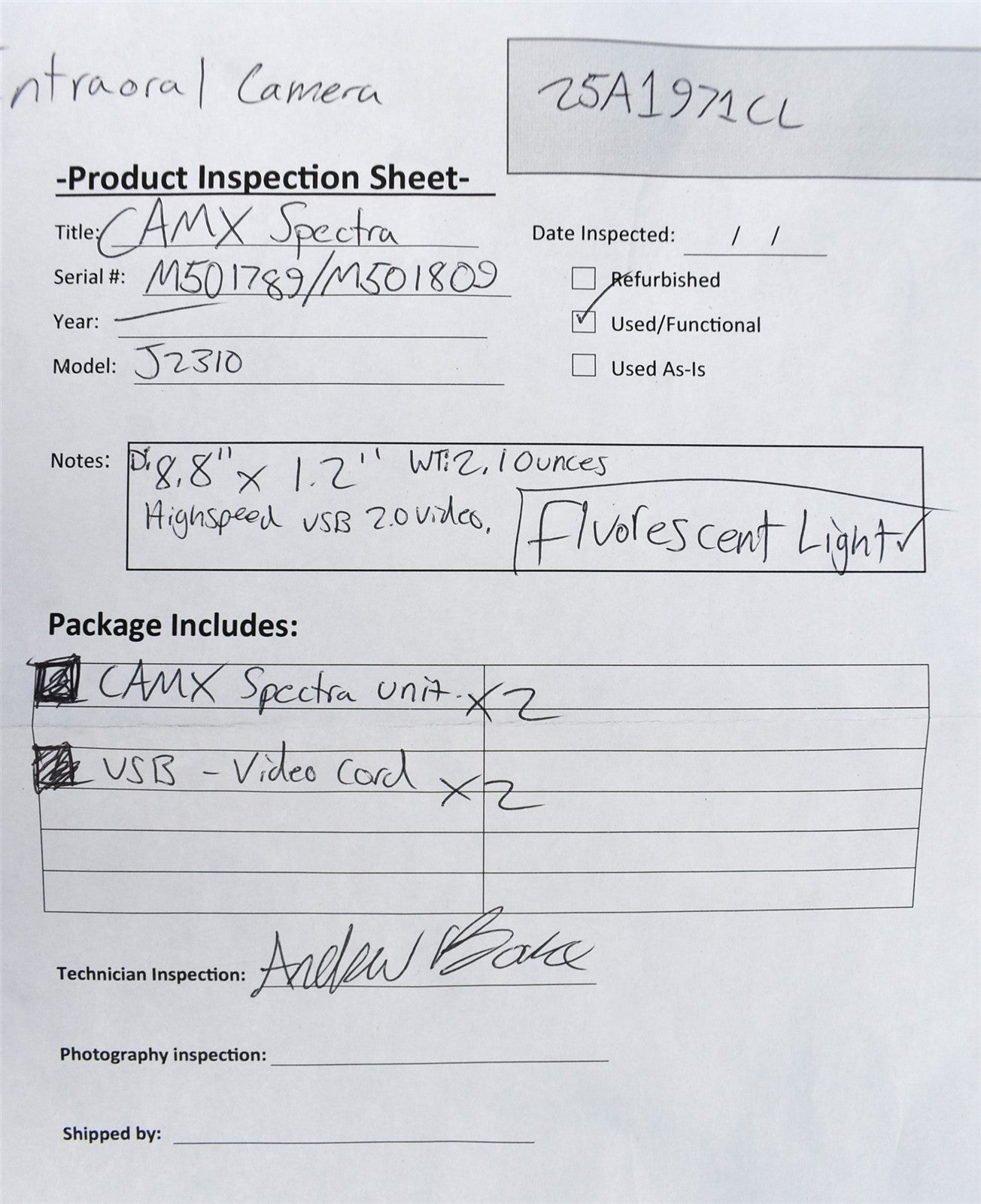 Lot of 2 Air Techniques CAM-X Spectra Dental Intraoral Cameras Imaging Modules