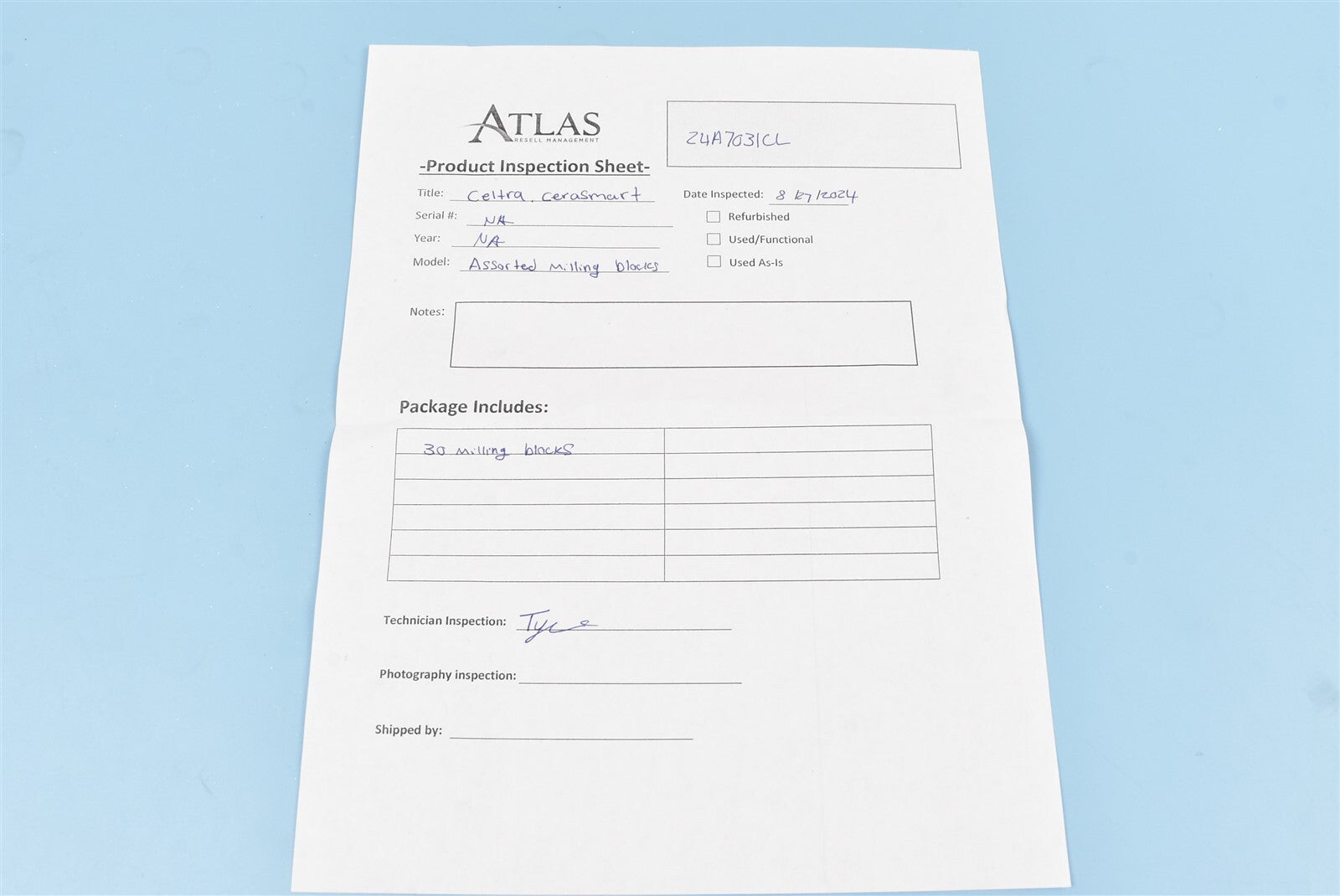 Atlas Resell Management has more experience testing and shipping CEREC and other CAD/CAM units than anyone else on eBay. Just check out the wide selection of CAD/CAM units in our store.We're proud to be the most trusted source for quality used CAD/CAM units in the pre-owned dental equipment market. Your purchase will NOT include: This product is pre-owned and may not include the same accessories as a new, unused unit. - other accessories not shown or listed here.Lot of 30: Celtra- (4) LT A1 C14, (4) LT A2 C14, (4) LT A3 C14, (4) LT A3.5 C14, (4) HT D3 C14 // Cerasmart- (7) LT A1 14L, (3) LT A2 14L