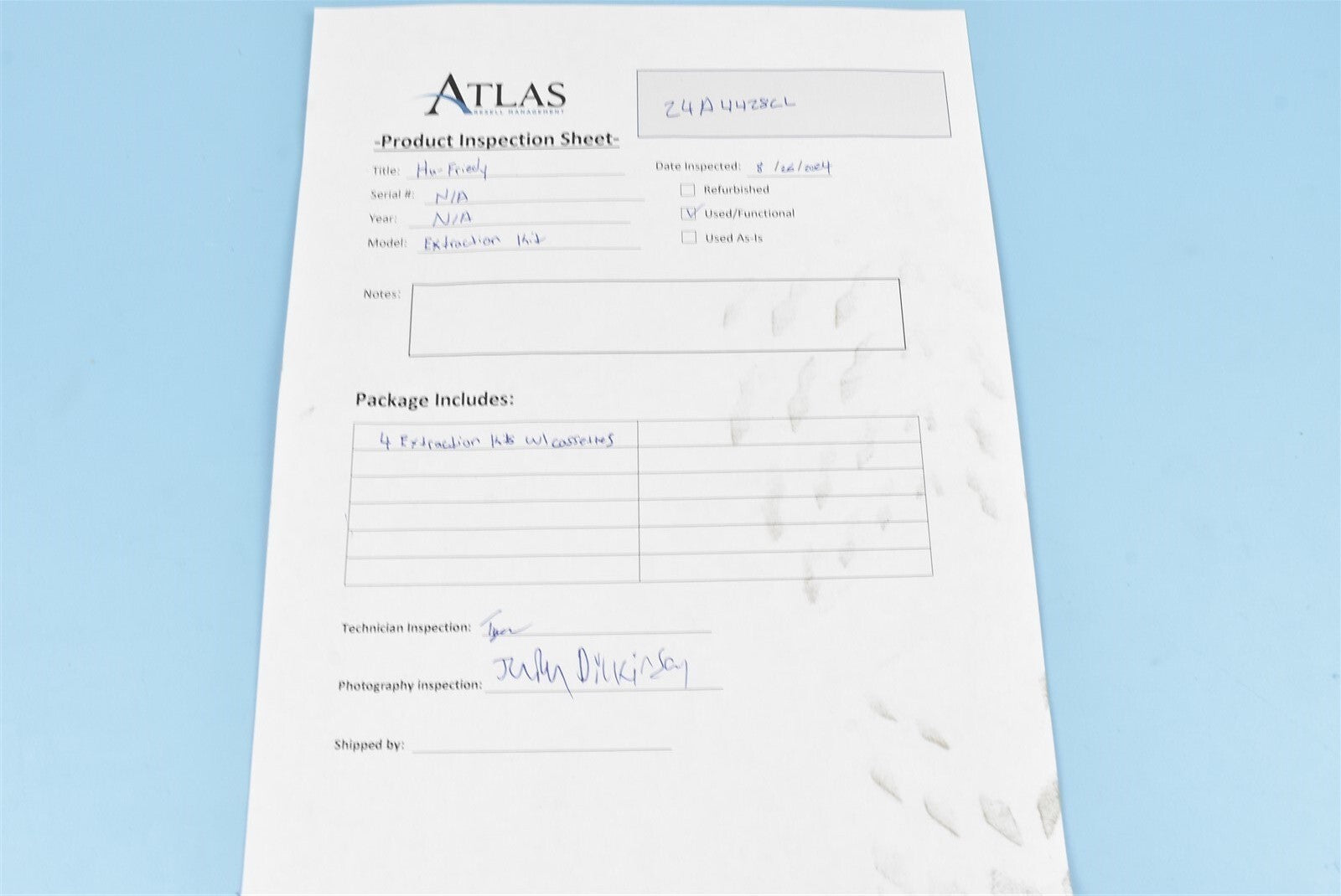 Inspected unit for missing parts and damage. These extraction kits are in excellent condition. 4 Total.