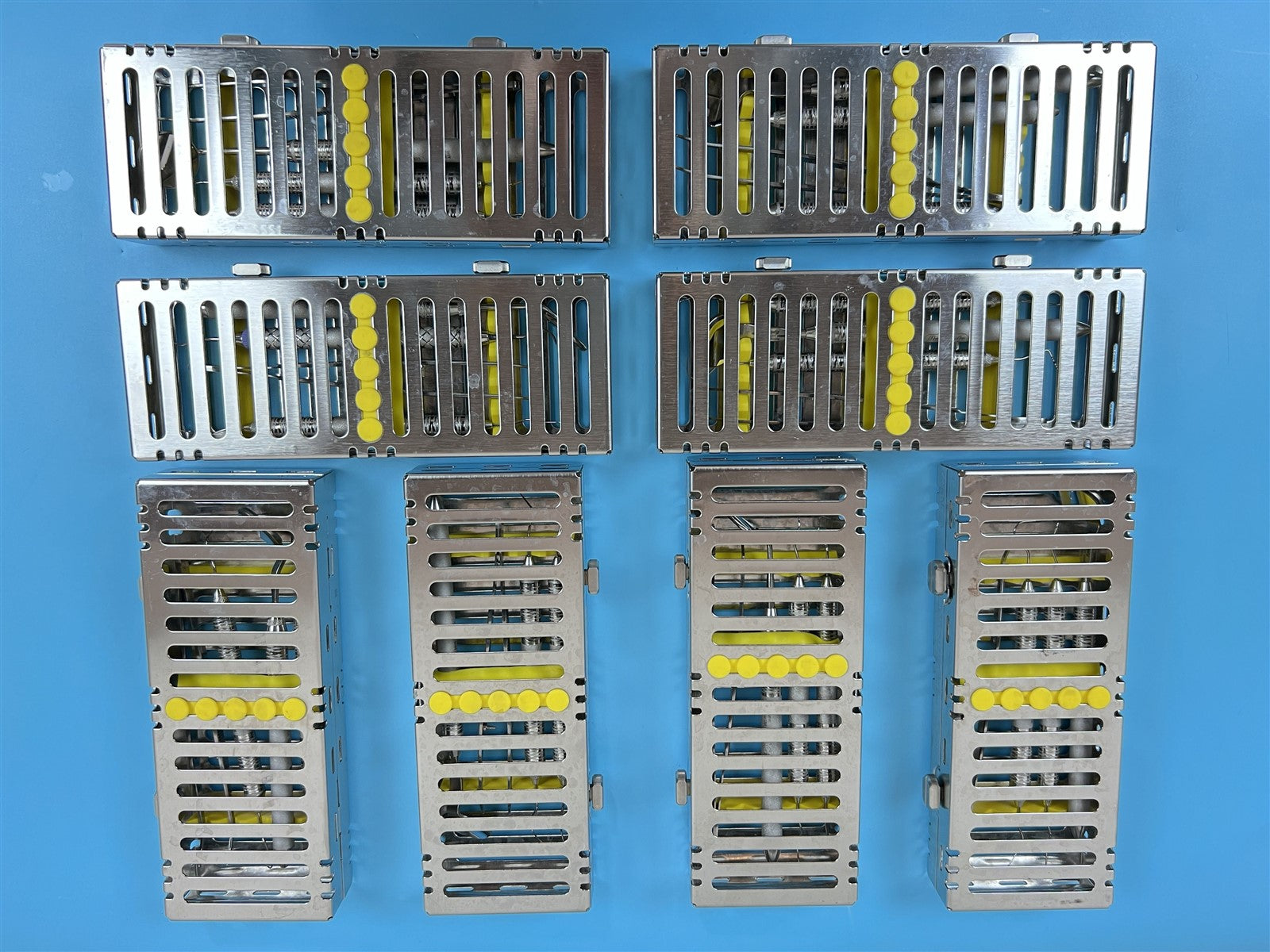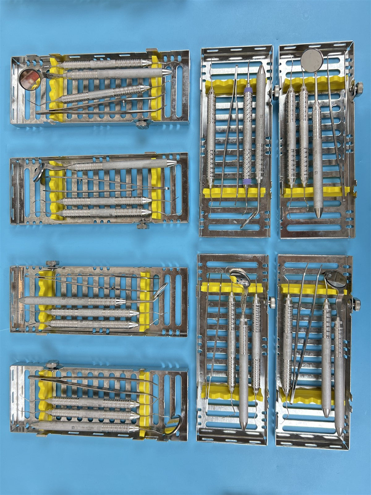 8 cassettes, each with various hand tools in them.