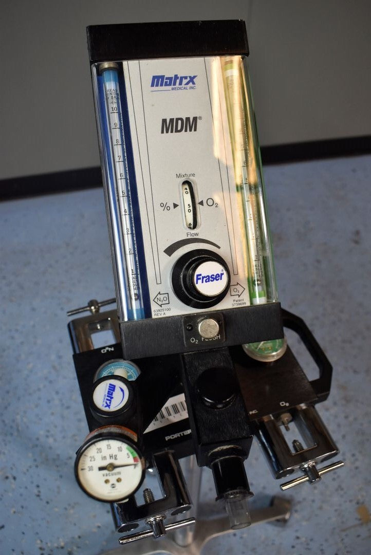 Your purchase will NOT include: N/A - other accessories not shown or listed here.The Matrx MDM Digital was refurbished by installing new regulators and polishing and cleaning each surface. O2 and N2O flow through the regulator, block, and flowmeter without any leaks. The flowmeter is accurate and in good condition overall. The screws in the block couldn't be pushed through fully, making the block potentially less secure. Refurbishment Successful