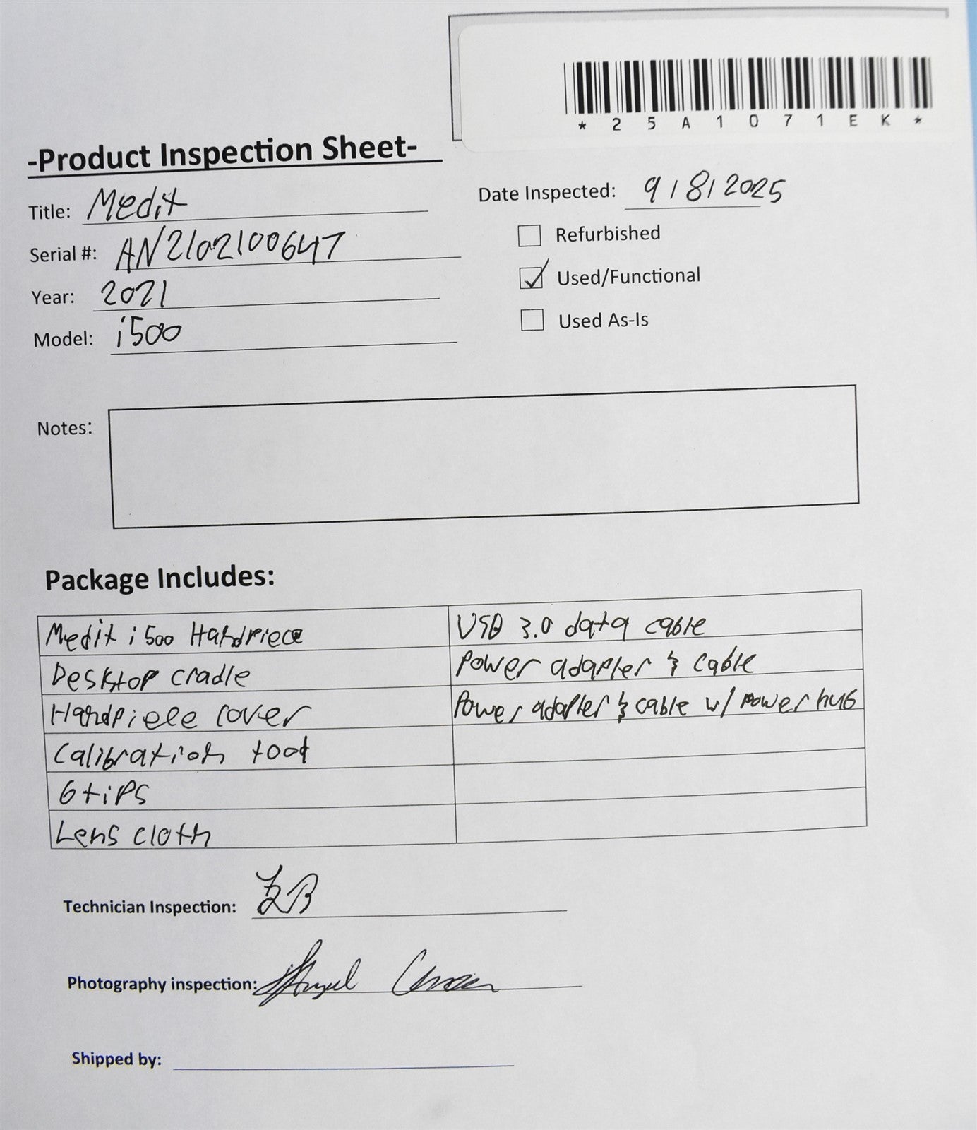 Medit i500 Handpiece Desktop Cradle Handpiece Cover Calibration Tool 6 Tips Lens Cloth USB 3.0 Data Cable Power Adapter & Cable Power Adapter & Cale W/Power Hub
