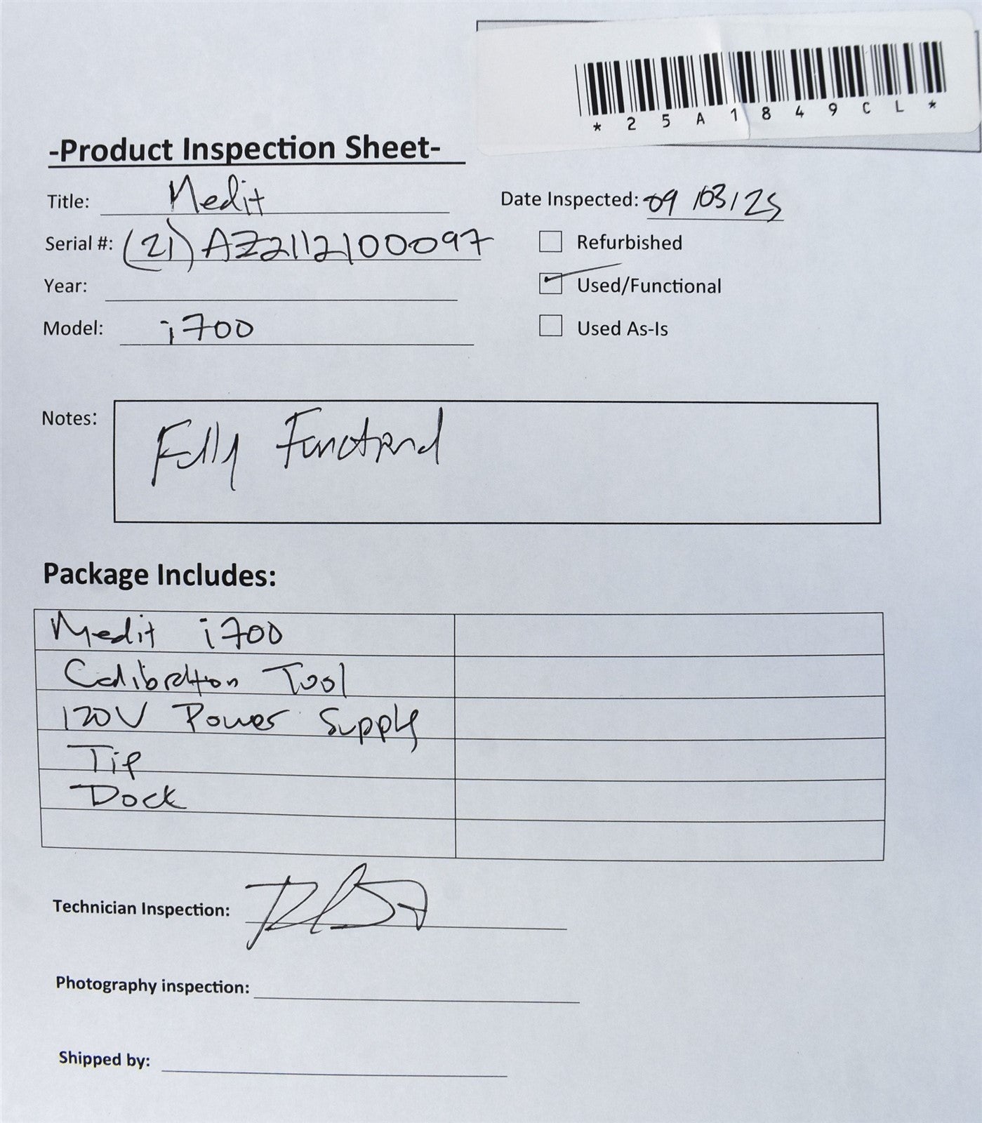 Medit i700, Calibration Tool, 120V Power Supply, Tip, Dock