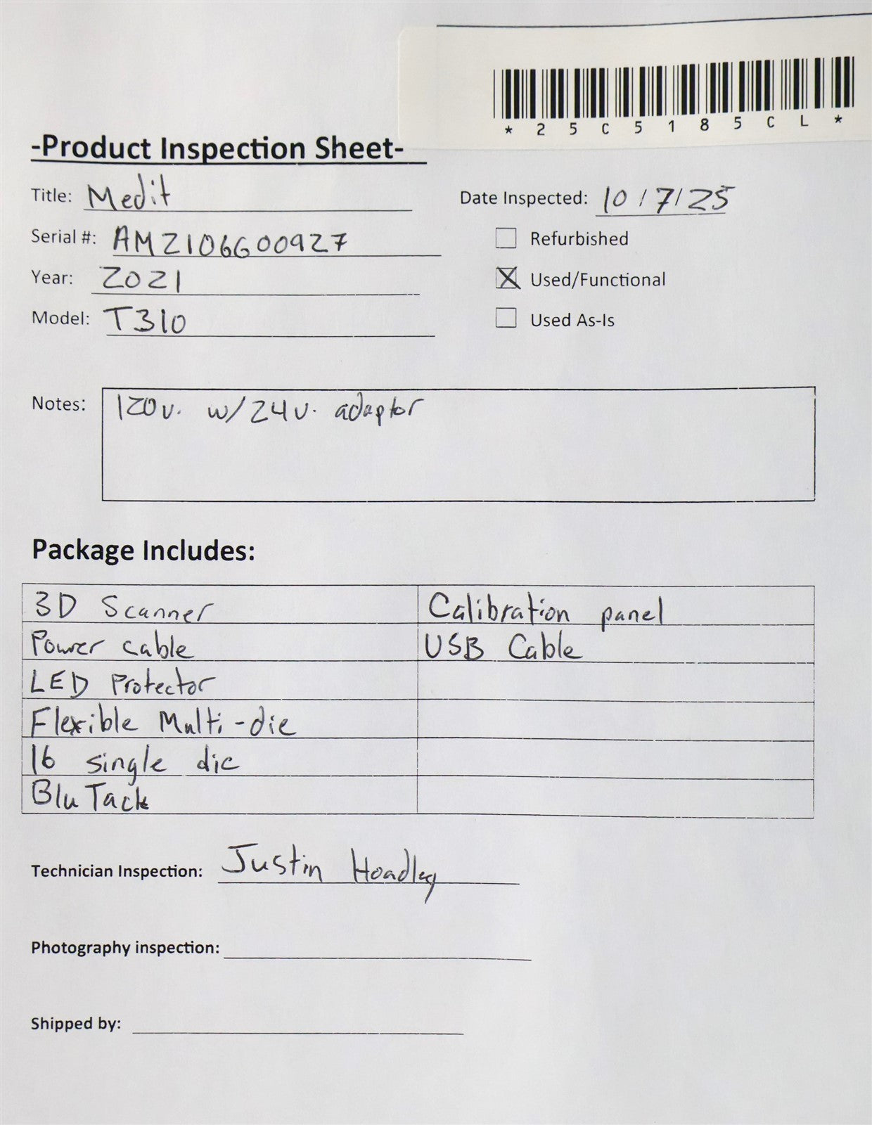 - Scanner Model: T310 Dental Lab Scanner