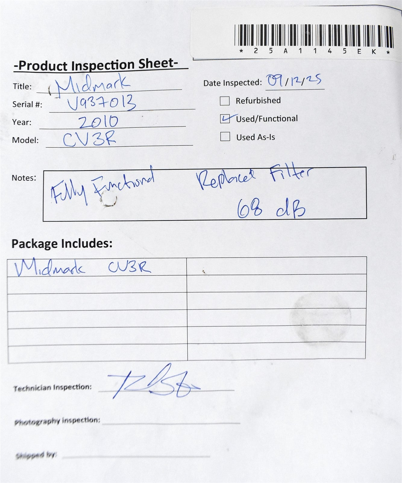 The unit has been thoroughly tested and confirmed to be in full working condition. The filter was replaced.