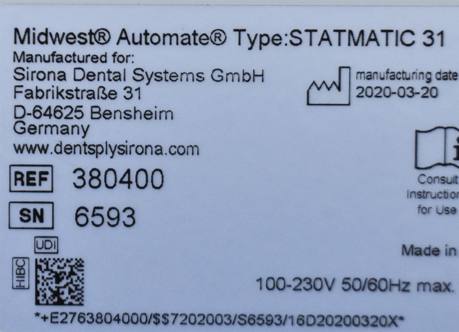 Midwest Automate Statmatic 31 Dental Handpiece Lubrication & Cleaning Unit 2020