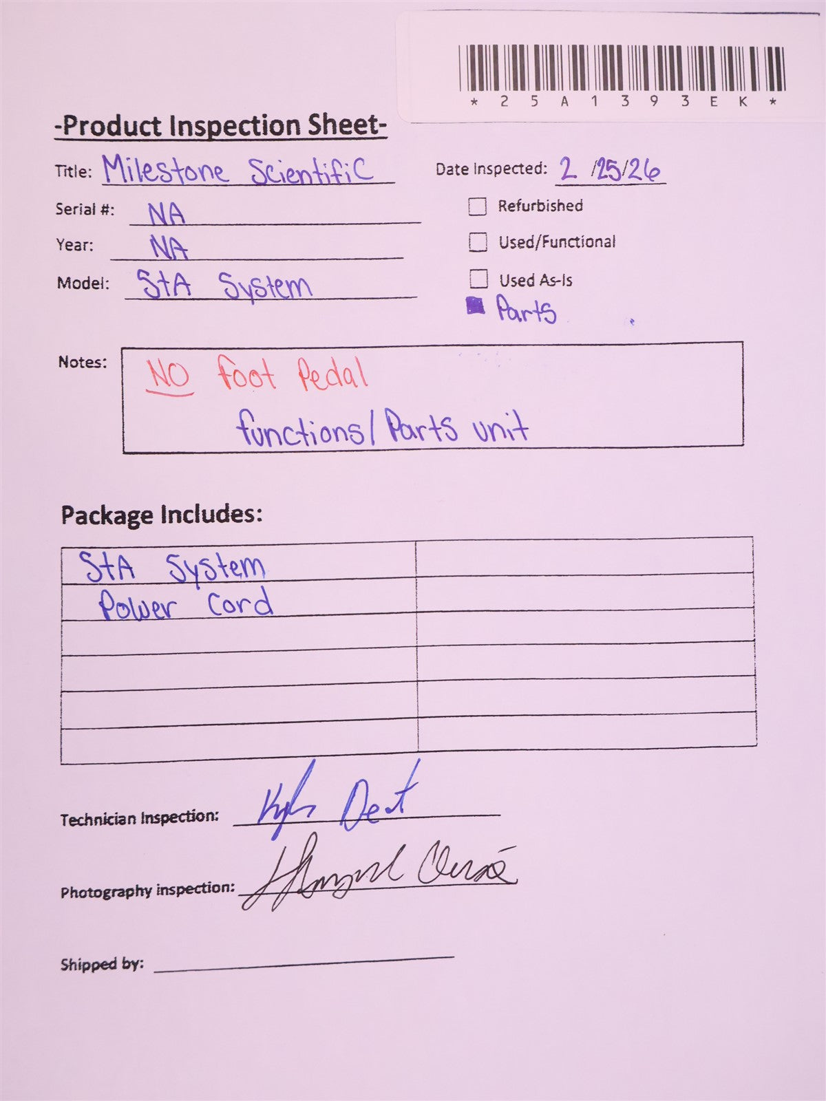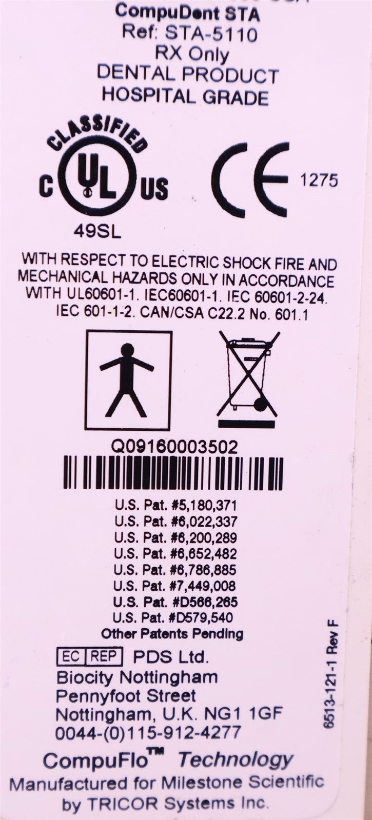 Your purchase will NOT include:Foot Pedal - other accessories not shown or listed here.The Milestone Scientific STA Single Tooth Anesthesia (STA) System is a computer-controlled local anesthetic delivery system designed for dental procedures. It provides precise, pressure-controlled anesthetic delivery and features Dynamic Pressure Sensing (DPS) technology to help identify the correct tissue location during injections. The system is commonly used for single tooth anesthesia, periodontal ligament (PDL) injections, and other targeted dental anesthesia techniques to improve patient comfort and accuracy. This unit was put into functional testing. The system powers on and operates properly when tested with a compatible foot pedal. Important: The foot pedal is not included with this unit. The foot pedal is required to activate and control the delivery of anesthetic during procedures, allowing the practitioner to start, stop, and regulate flow while maintaining hands-free operation. Because the foot pedal is not included, this unit is being sold for parts only and as-is.