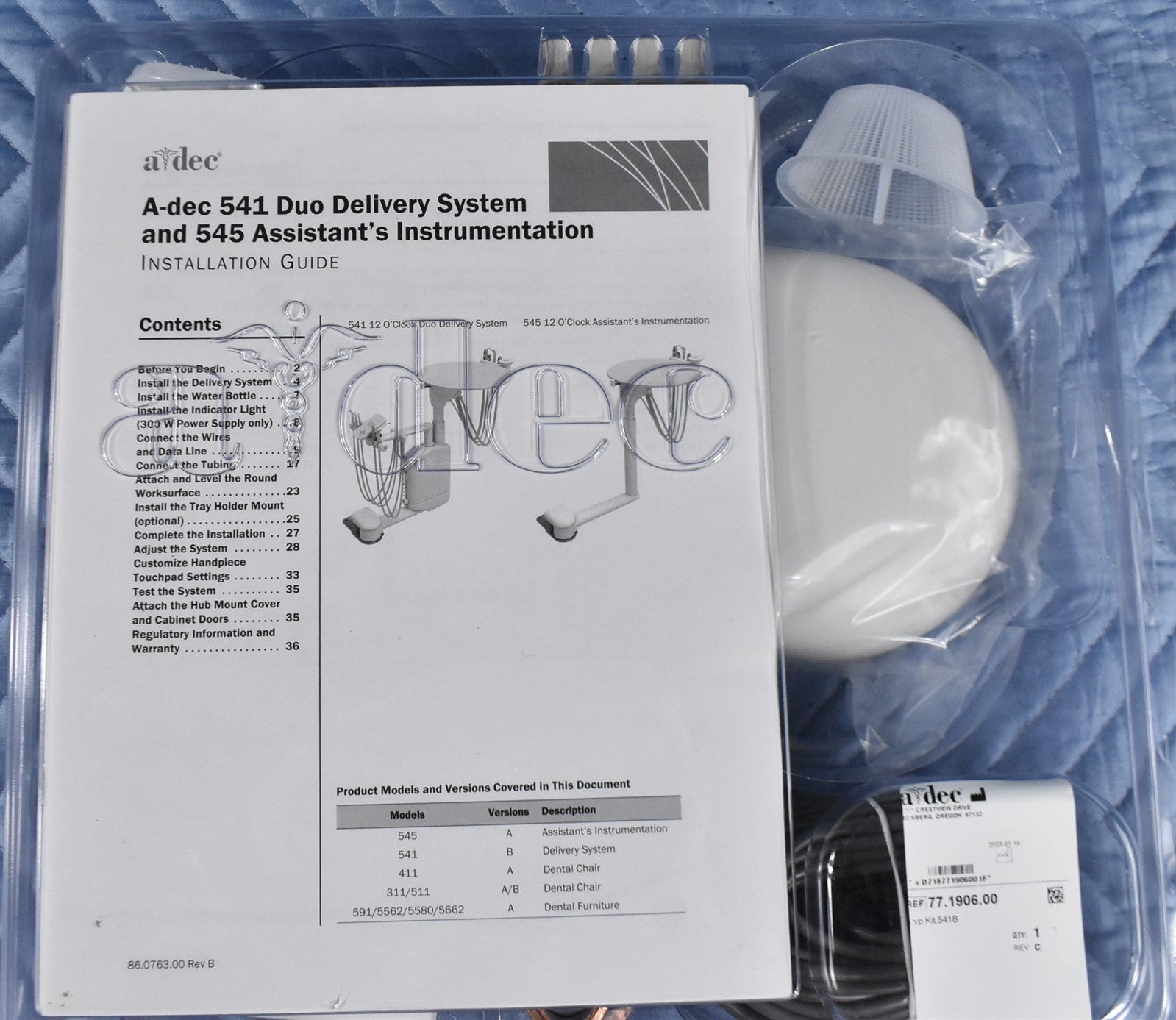 541 Duo Delivery System, Domestic Vacuum Tubing, Water Bottle Kit, Foot Control, Ship Kit, Cable Kit, Install Kit, Wall Plate Kit, Work Surface