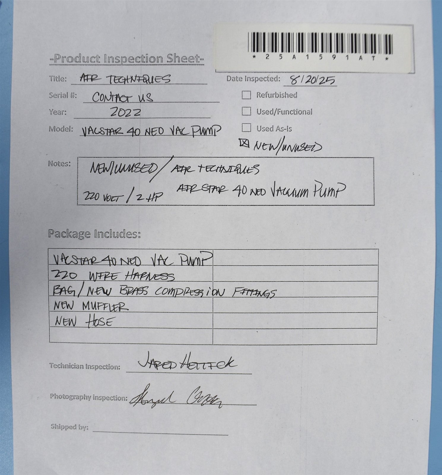 VacStar 40 NEO Vacuum pump, 220 volt wiring harness, Bag/ new Brass compression Fittings, New Muffler, New Hose.