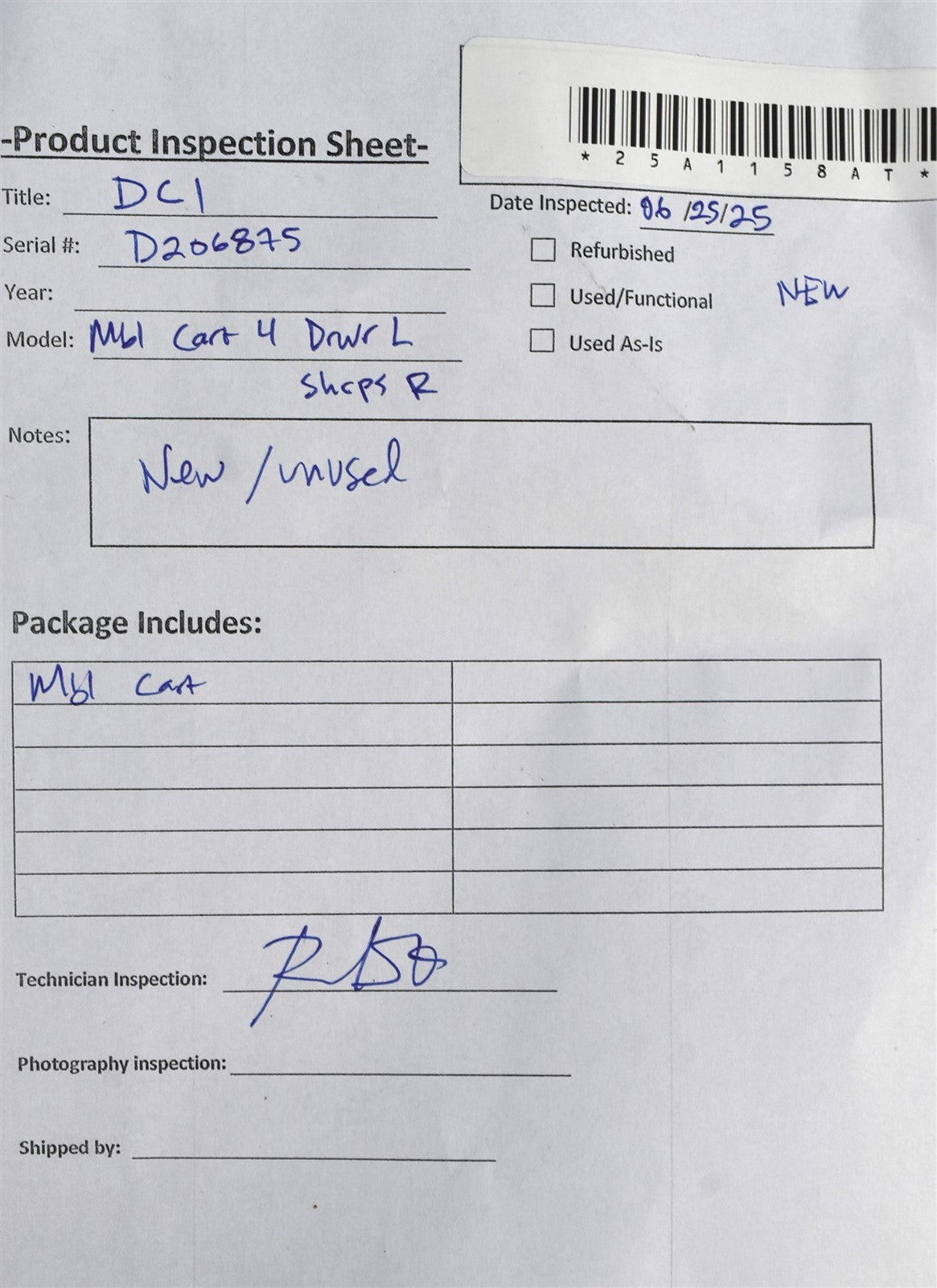 • Model: Mbl Cart 4 Drwr L Shrps R
