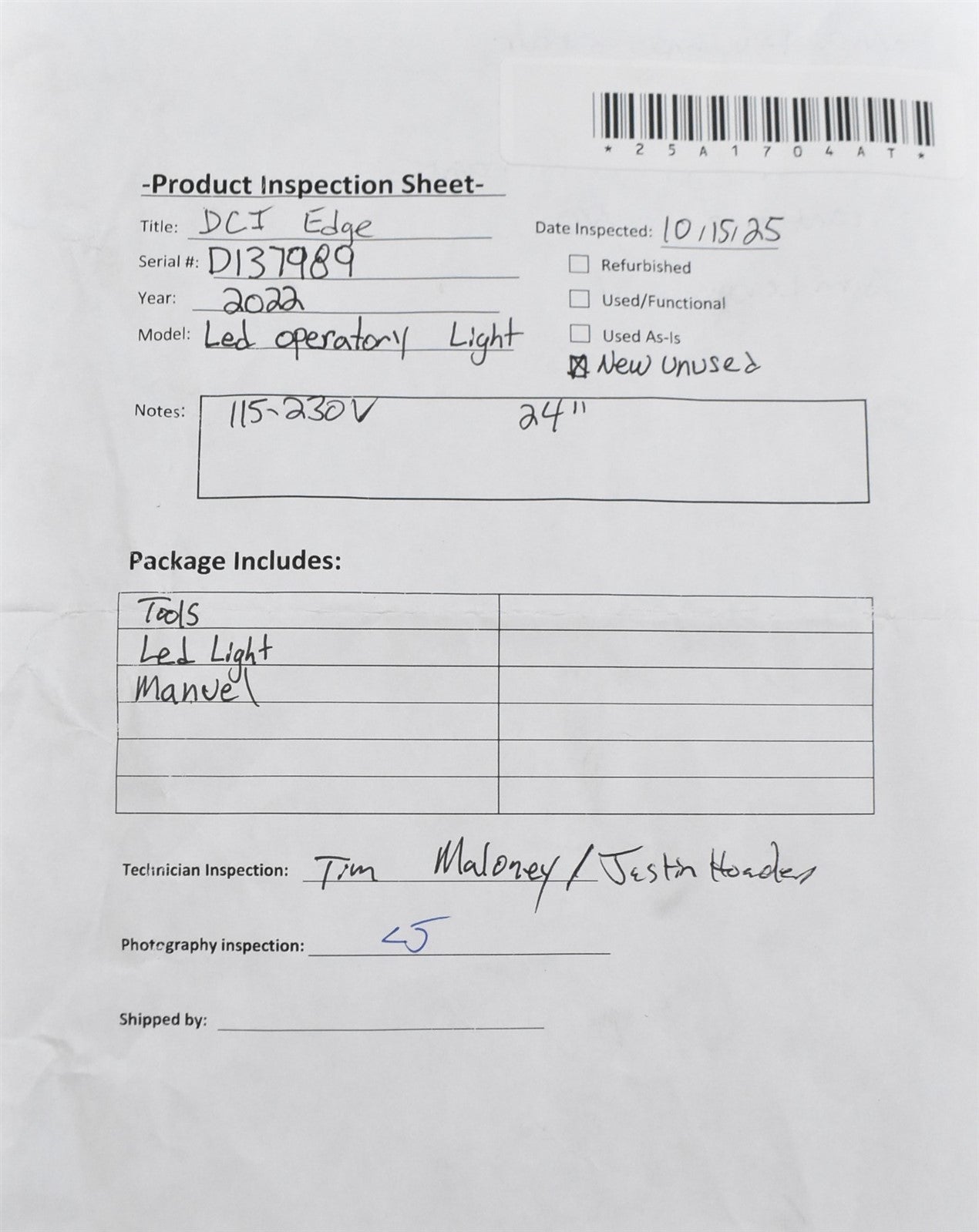(10/16/2025) - Verified that all components are present, undamaged, and document condition without powering on the unit. (ST)