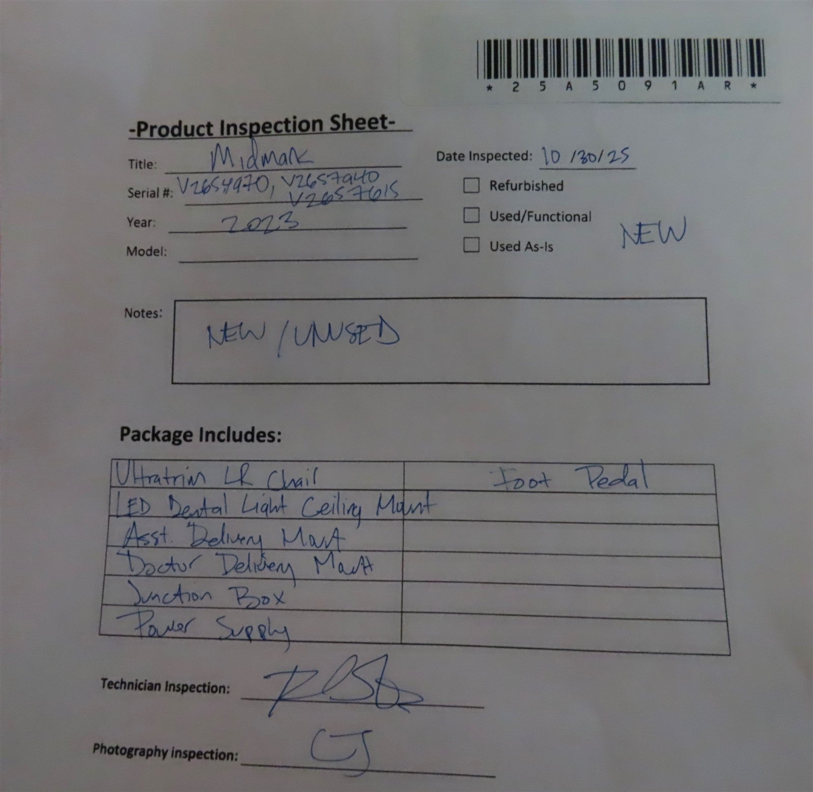 - Exam Chair Serial Number: V2654970, V2657940, V2657615