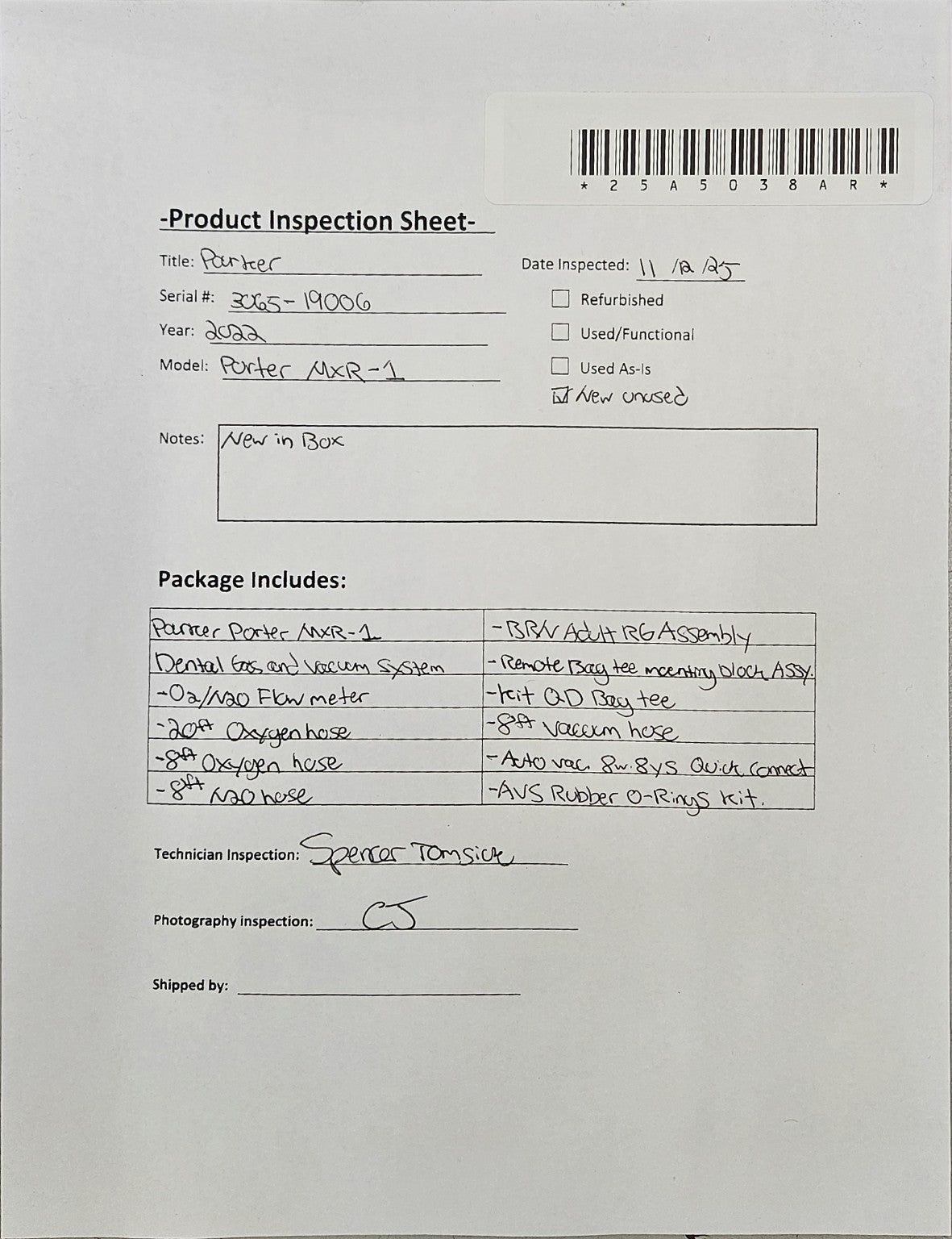 Verified that all components are present, undamaged, and document condition without powering on the unit