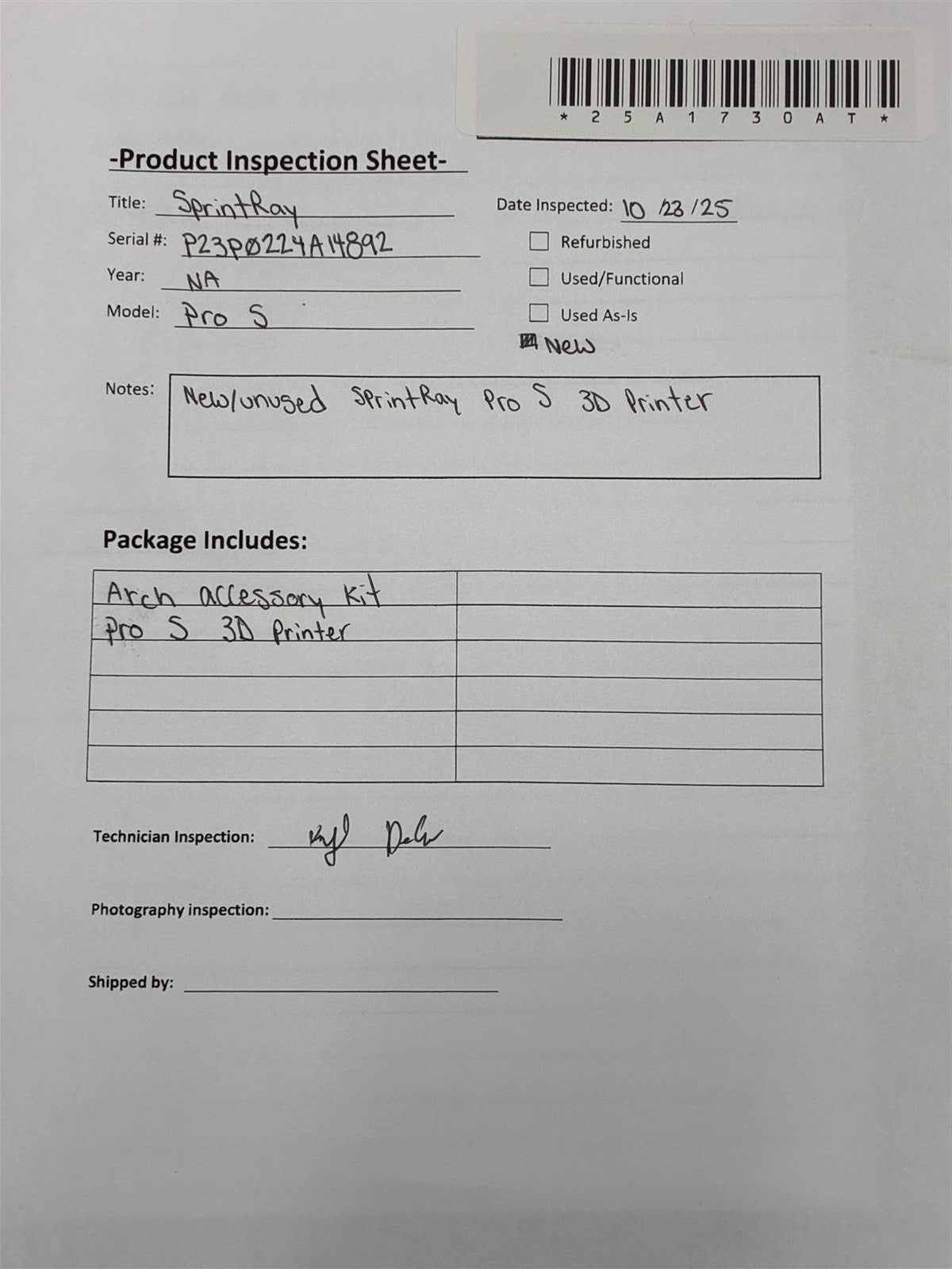 Your purchase will NOT include: any other accessories not shown or listed here.This SprintRay Pro 2 3D Printer is NEW and UNUSED. Includes an arch building platform and arch resin tank. Still in original manufacturing box.