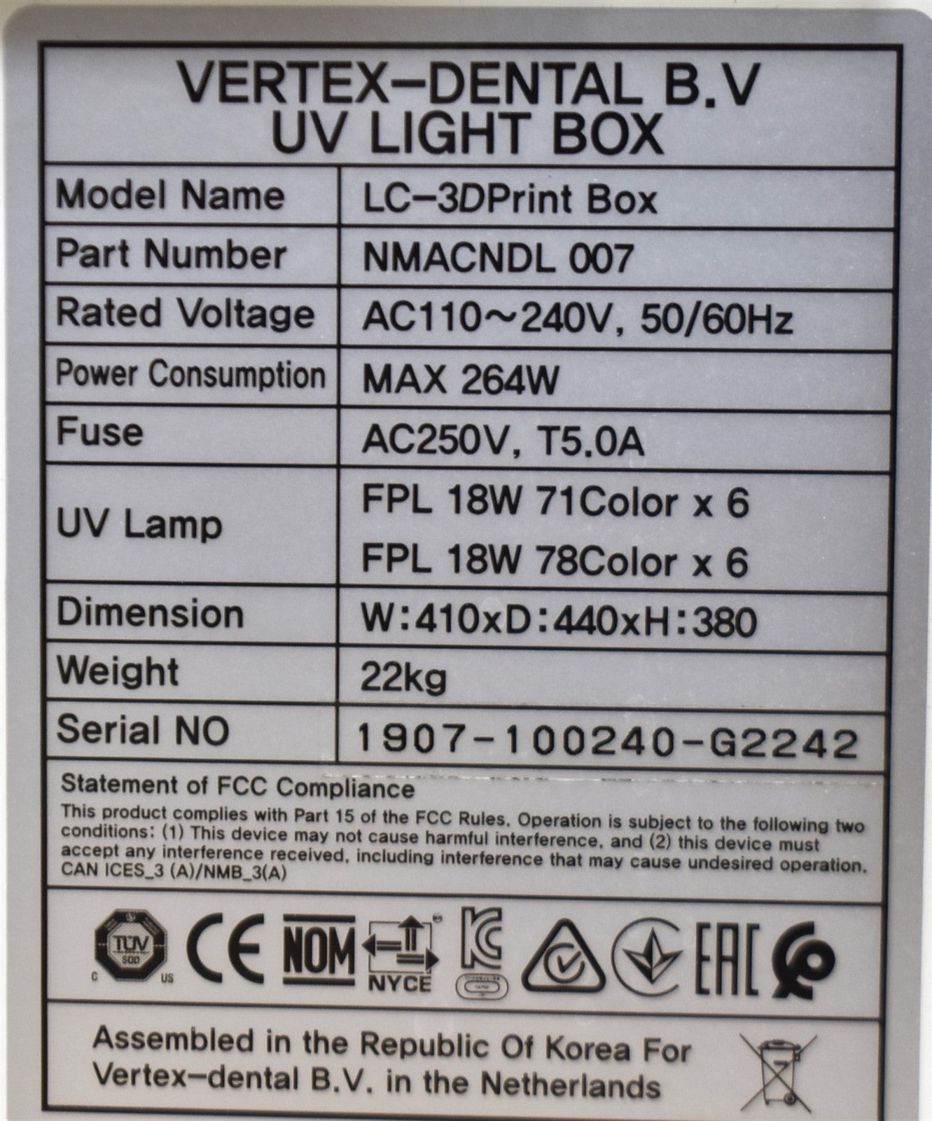 Next Dent 5100 Ceramill LC-3Dprint box, 120 volt power cords.
