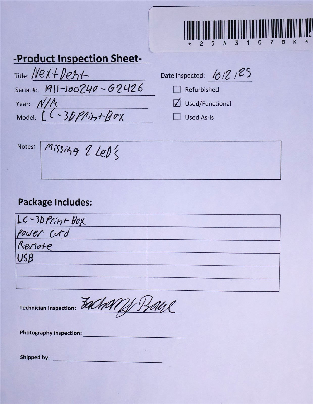 This item has undergone a thorough visual inspection and functional testing to check for any and all defects. The unit has been confirmed to be in complete working condition, with no issues or malfunctions detected.