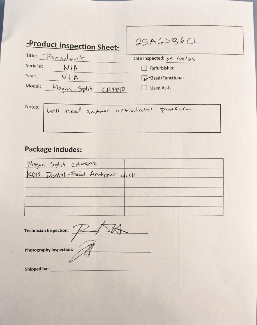 Articulator platformThis product is pre-owned and may not include the same accessories as a new, unused unit.