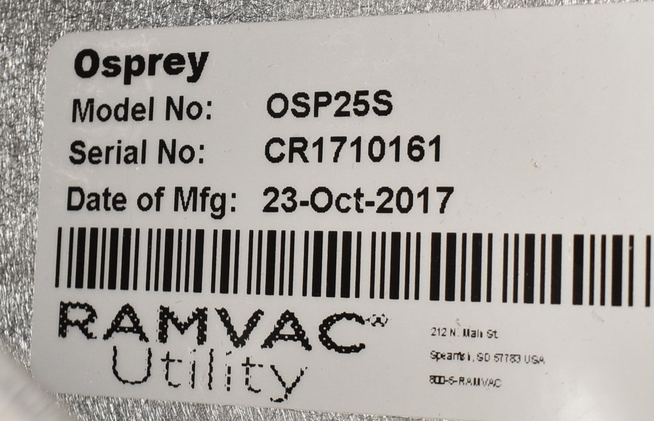 Your purchase will NOT include: - other accessories not shown or listed here. RamVac Osprey OSP23S Dry Dental Vacuum Pump 100% water-free design for reduced utility costs and environmental impact Quiet, energy-efficient operation with smart control technology Supports up to 2–3 dental users simultaneously Compact footprint for flexible installation in modern practices Advanced separation and filtration system to protect the pump Durable oil-free rotary vane technology for long service life Simple maintenance with easy service access points Consistent, high-performance suction for reliable operatory use Designed and manufactured by DentalEZ/CustomAir (RamVac division)Both motor covers damaged and need replaced, 2 filter covers/air inlets are broken could be replaced or be left alone. The hose connections from the motors to the tank are also broken clean off so the hoses cannot fill the tank. Current state is nonfunctional and needs a handful of parts