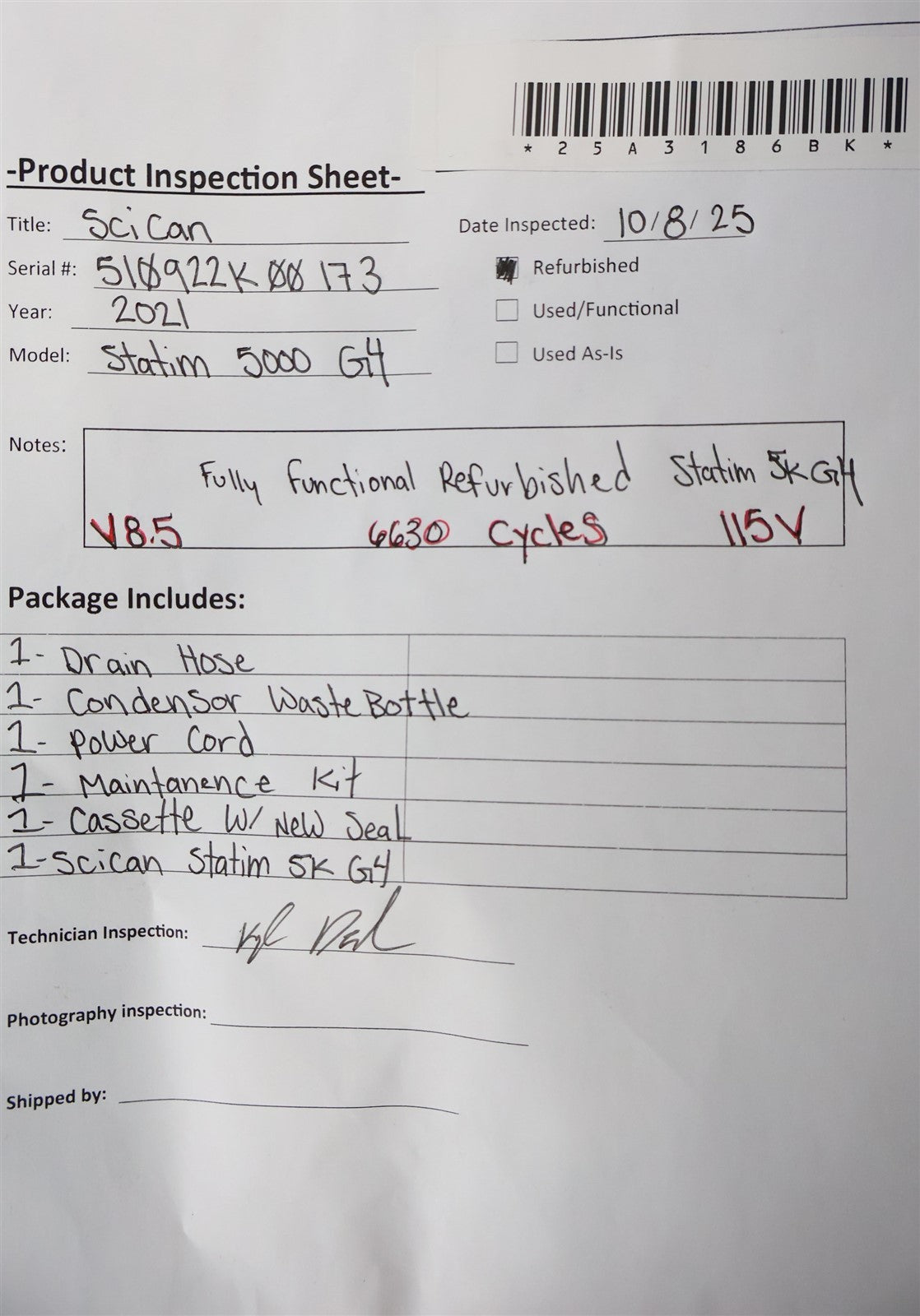 Your purchase will NOT include: - other accessories not shown or listed here.This autoclave was put through an initial functionality test, to prove that it does indeed work. Once it was proven to operate correctly, it was then connected to the internet via it's own built Ethernet connection, and a new feature update was successfully installed. Then this sterilizer was disassembled down to it's bare chassis, cleaned, and reassembled. Preventive maintenance parts were installed, which include, a new Water Pump, Air Valve, Check Valve, Biological Filter and Compressor Air Filter. The Reservoir Tank was cleaned and flushed and a Water Pump Filter were installed. A new Display and Keypad were installed. The sterilizing cassette was also cleaned and a new Cassette Seal was installed. Prior to running test cycles on this sterilizer, the temperature sensors were calibrated. Then this autoclave was tested through all it's preset sterilizing and drying cycles multiple times. To verify that this unit is achieving it's highest maximum required sterilization temperature, it was tested using a Max Register Thermometer and found to exceed 273 F while running a sterilization cycle.