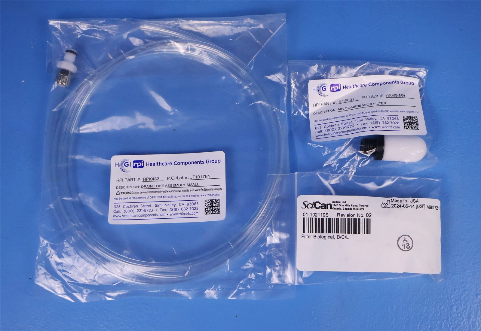 1- Cassette with new seal, 1- Power Cord, 1- Drain Hose, 1- Condensor Waste Bottle, 1- Unwrapped Tray, 1- Maintanence Kit.