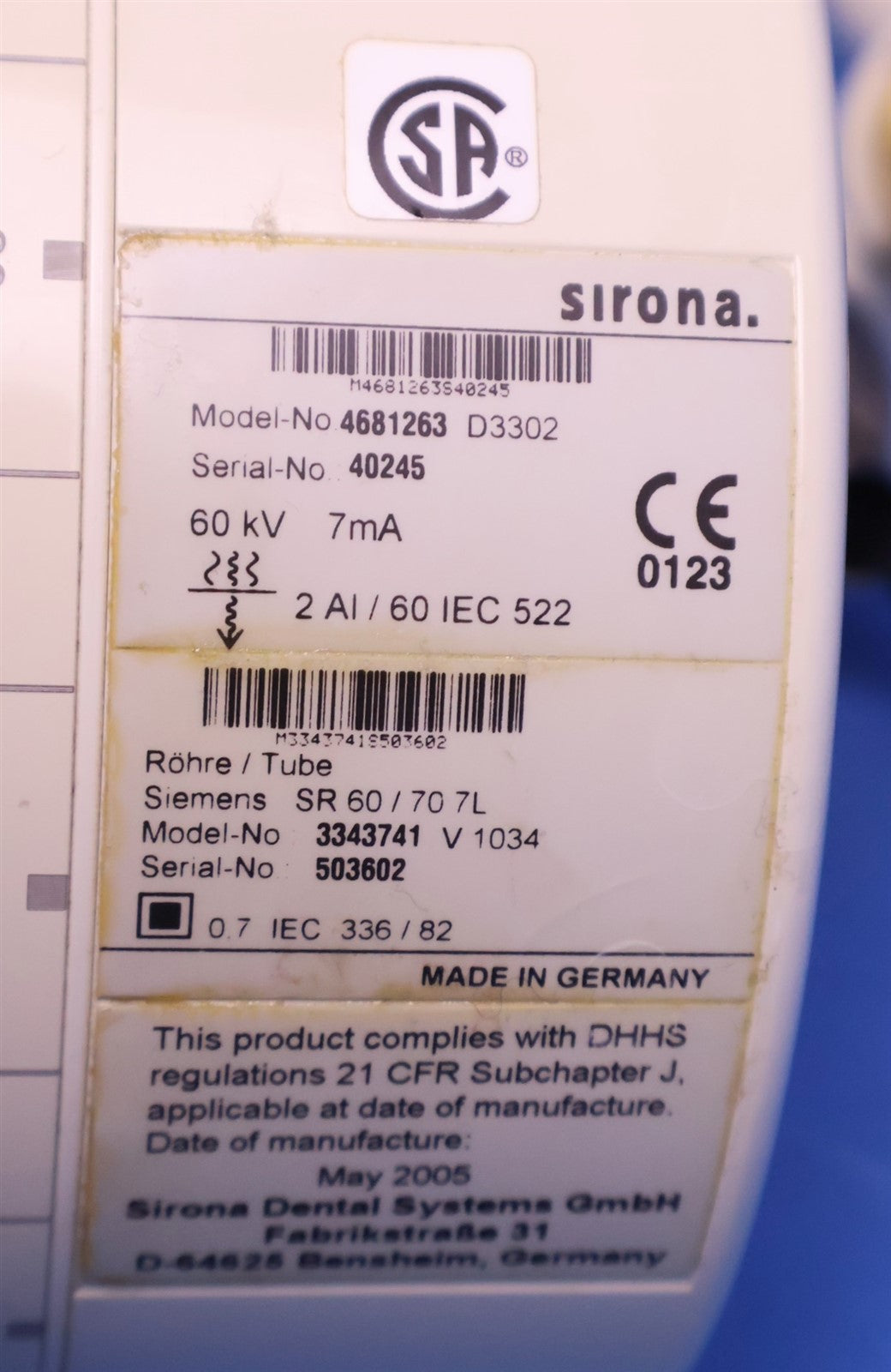 Sirona, Control Box, X-ray