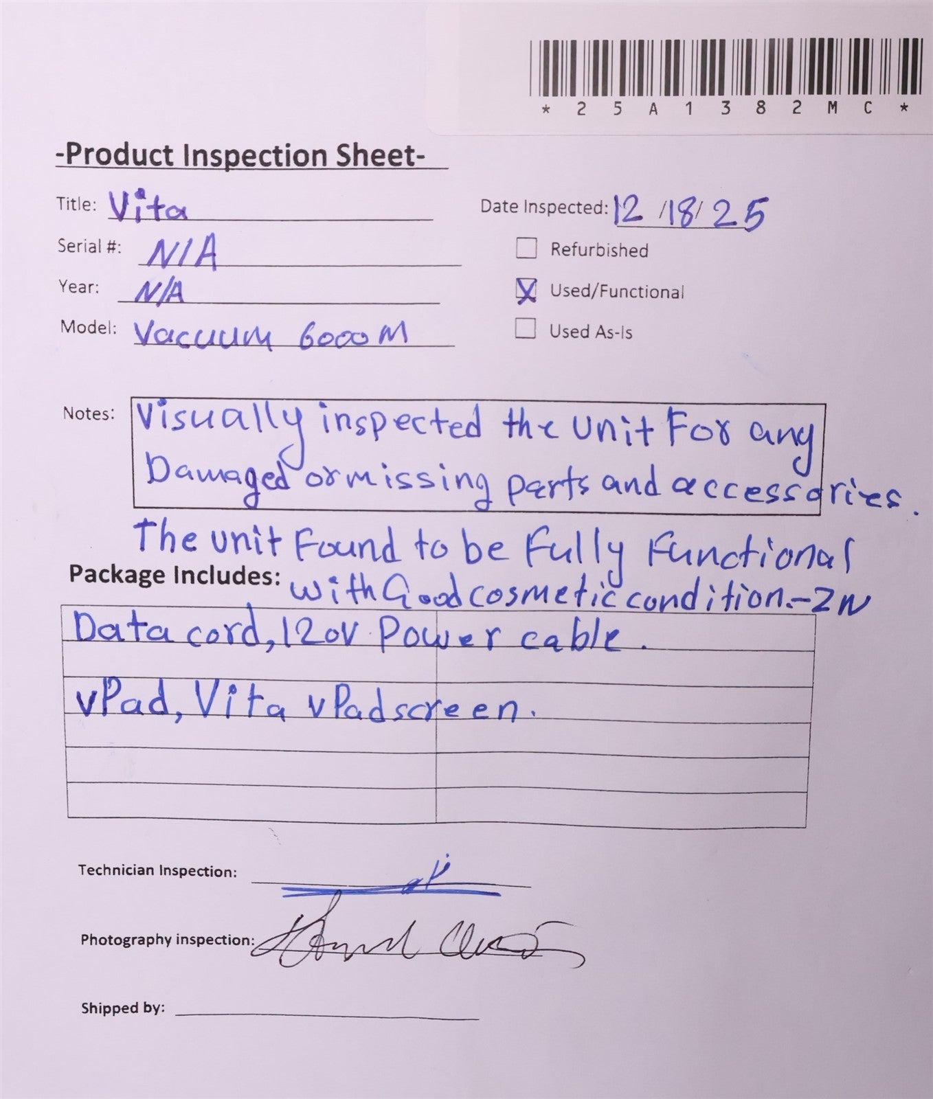 Your purchase will NOT include: Vacuum Pump, ManualThis product is pre-owned and may not include the same accessories as a new, unused unit. - other accessories not shown or listed here.Visually inspected the unit for any damaged or missing parts and accessories. the unit the unit found to be fully functional with good cosmetic condition. ZN